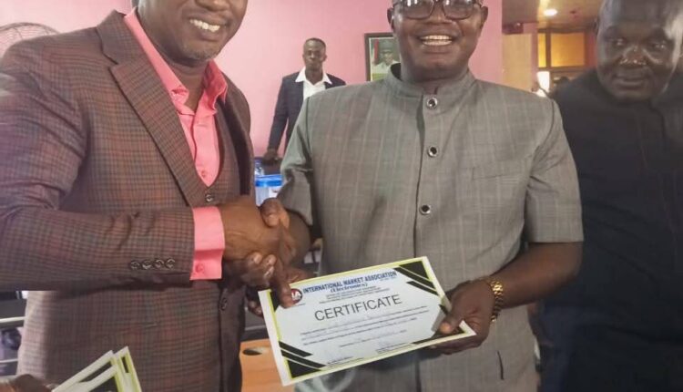 The International Market Association Electronics, led by Chief Camilus Amajuoyi (President General), includes key members such as Mr. Eugene Obiezue (1st Vice President), Hon. Maduabuchi Adiukwu (2nd Vice President), Hon. Benneth Ugochukwu Duru (General Secretary), Mr. Onyekwere Innocent (Assistant Secretary), Mr. Chinedu Cornelius (Financial Secretary), Reverend Theo Ezeani (P.R.O.), Mr. Malachy Osunwa (Treasurer), Mr. Darlington Onuorah (Chief Provost), and Ebuka Agagwu Ezenwa (Assistant Provost).