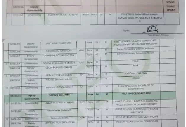 “The Amended list of candidates in respect of the 2023 Bayelsa State governorship election is hereby amended pursuant to the orders of court served on the commission,” Oriaran-Anthony said.