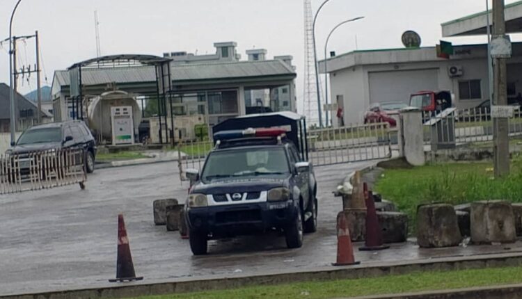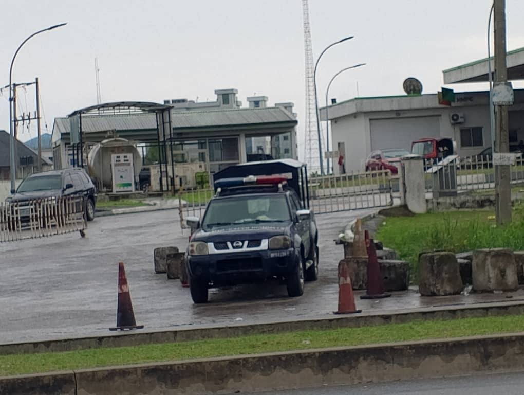 At the NNPCL Mega Filling Station, vehicles were seen queueing to get fuel while the whole area was very peaceful