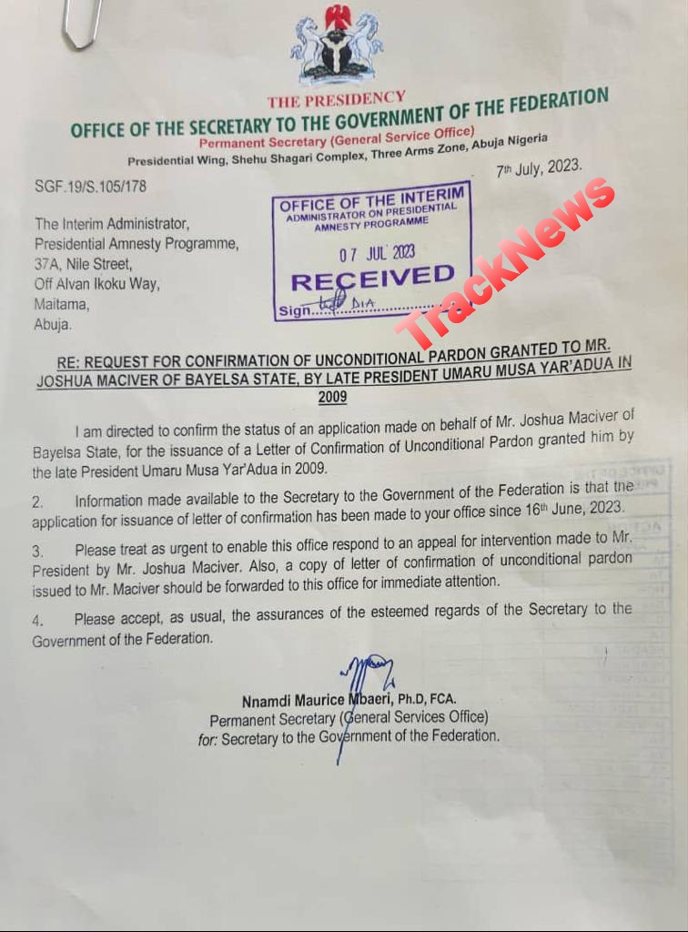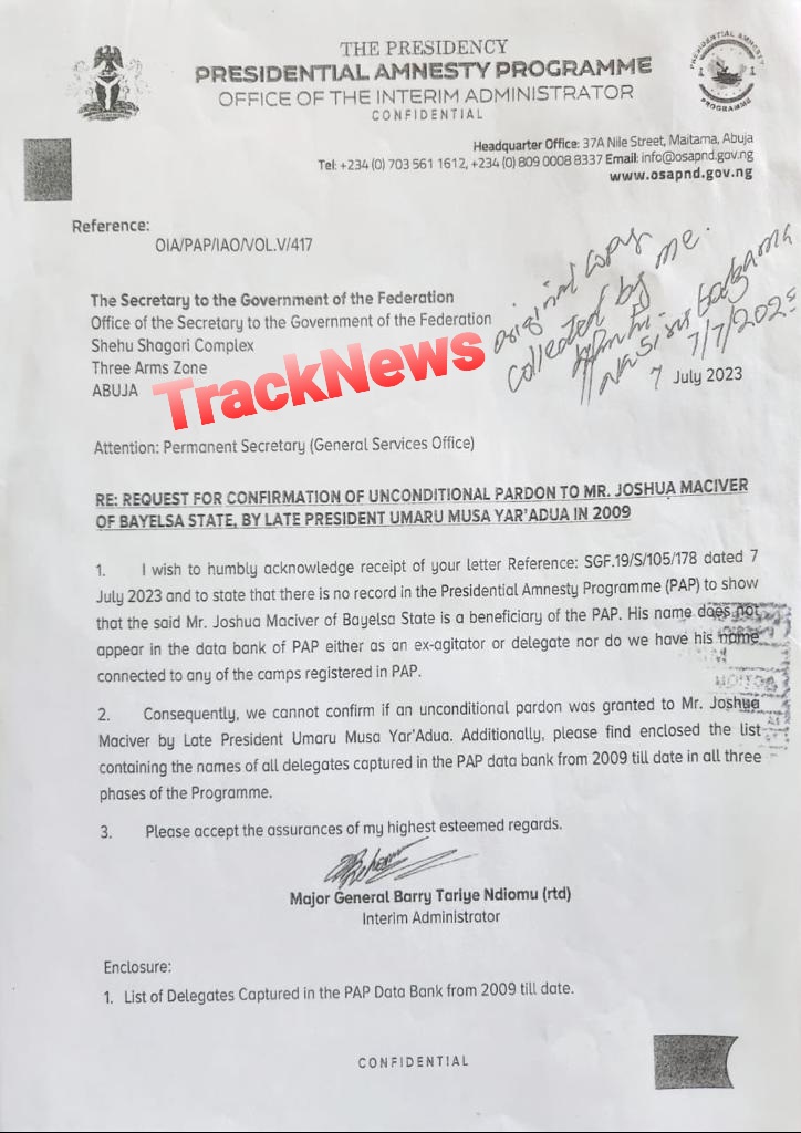 Kemepadei, who attached the leaked documents, wondered why Ndiomu while responding to the SGF’s letter lied that the Deputy Governorship Candidate of the APC in Bayelsa, Joshua Macaiver, did not participate in the amnesty programme.