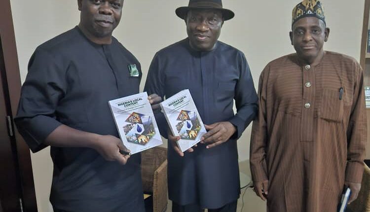 Former President Goodluck Jonathan was on Thursday in Abuja presented with copies of the trending book “Nigeria’s Local Content: A Journey of Strategic Communication and Economic Transformation, written by Dr Obinna Ezeobi.