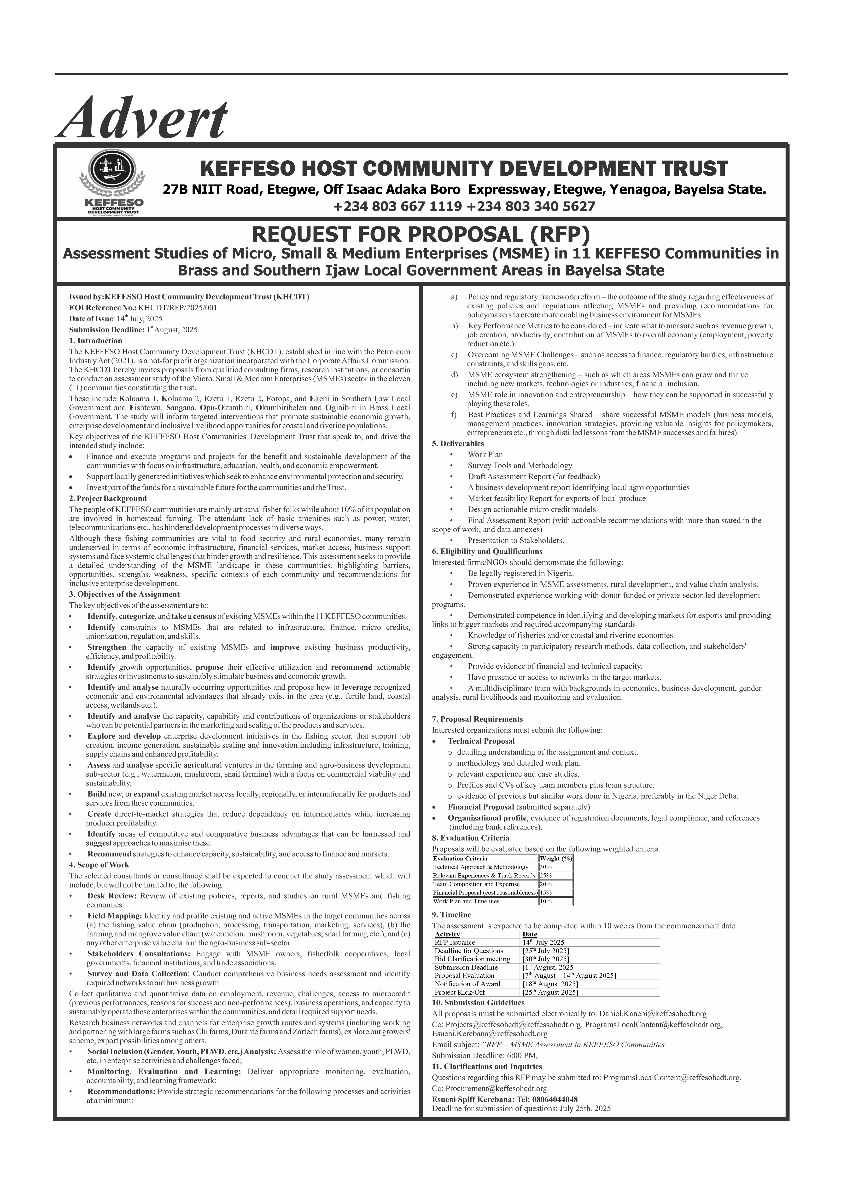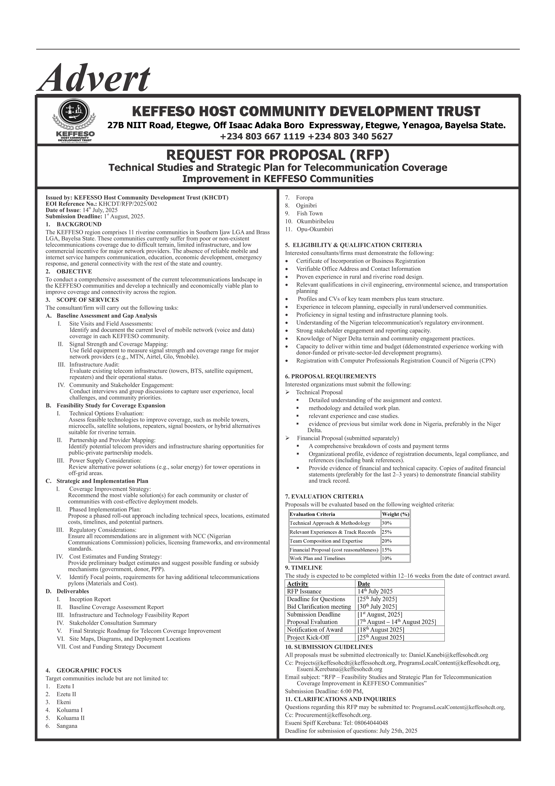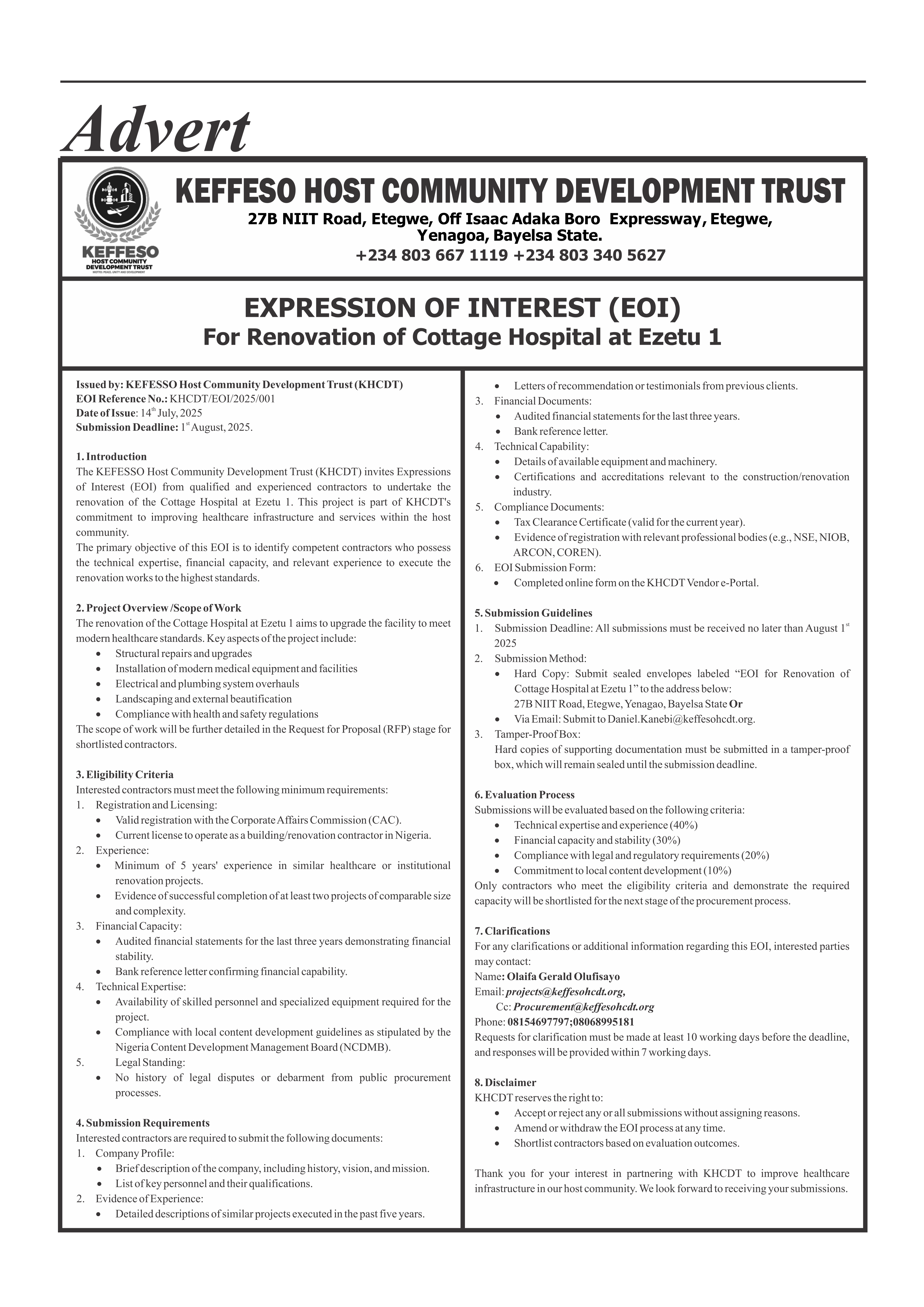 The full details of the Expression of Interest publication can be found in the Niger Delta Herald edition dated Wednesday, July 16th – Tuesday, July 22nd, 2025.