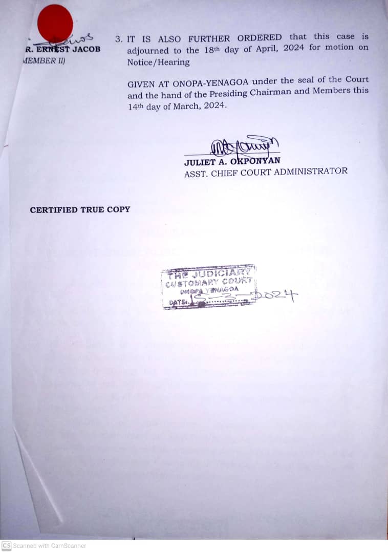 “Though the case is scheduled to come up on the 16th of July, 2024, it is hoped that the Petition which is addressed to the President of the Bayelsa State Customary Court of Appeal will be looked into by the President as soon as possible in the overall interest of justice”.
