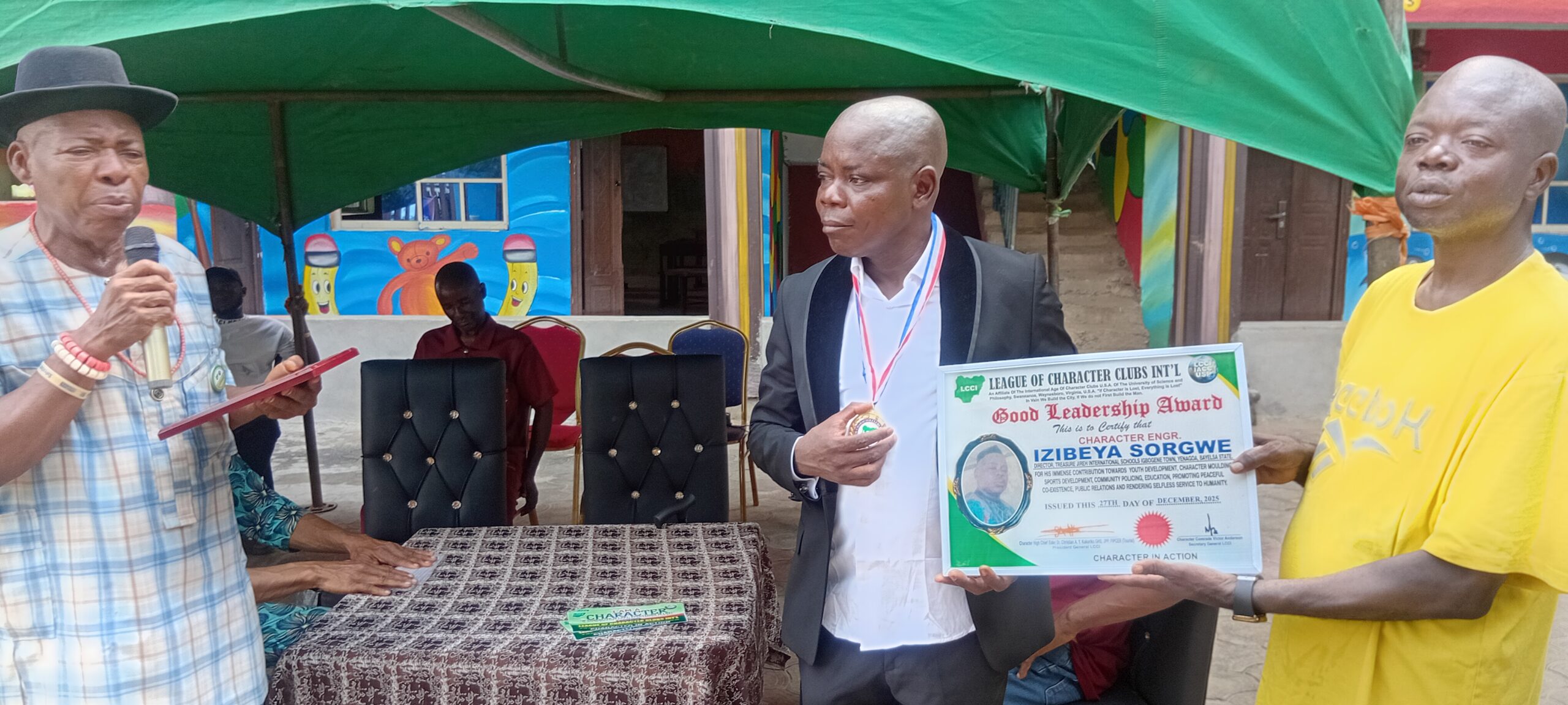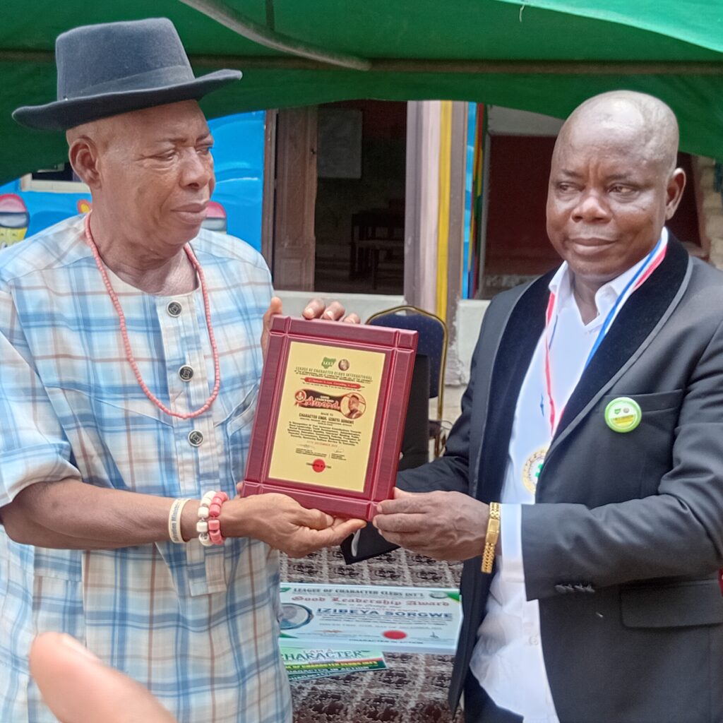 Presenting the award, the President-General of the League of Characters Club, Character Christian Kokoriko, said Engr. Sorgwe had distinguished himself as a man of integrity by establishing an educational institution deliberately focused on moulding the character of future generations.