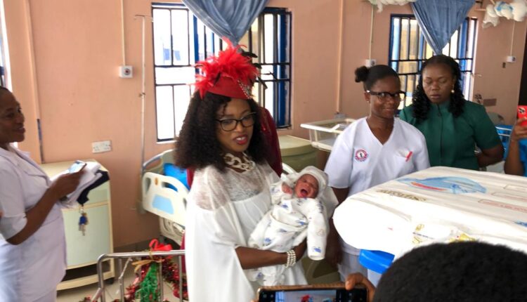 The wife of the Bayelsa State Governor, Dr.Mrs. Gloria Diri today, donated cash and gift items to the ‘Christmas baby, at the Federal Medical Centre,Yenagoa.