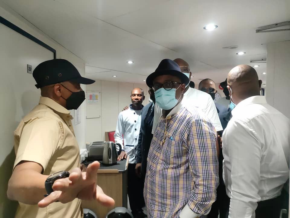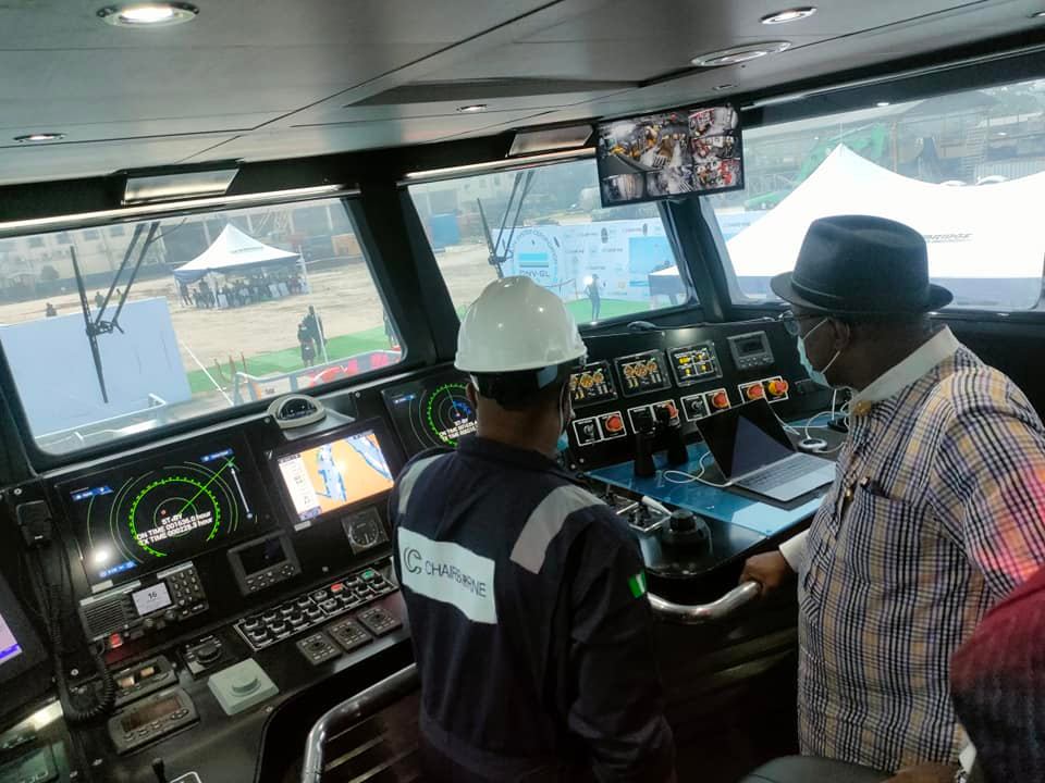 The Executive Secretary, Nigerian Content Development and Monitoring Board (NCDMB) Engr Simbi Kesiye Wabote (FNSE) was at the Van Oord Jetty West African Dredging Yard, Abuloma, Port Harcourt, Rivers State where he delivered  the Keynote Speech and Breaking of Champagne and Ribbon Cutting for the commissioning ceremony of Chairborne Global Services  Ltd’s Vessel “MV MEEDOI”