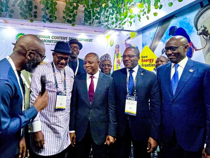 Barr. Esueme Dan Kikile, Manager Corporate Communications NCDMB, make clear the mandate and workings of the Board to the various industry stakeholders on their visit to the Board’s exhibition stand at the ongoing Nigerian Oil and Gas Energy week in Abuja.