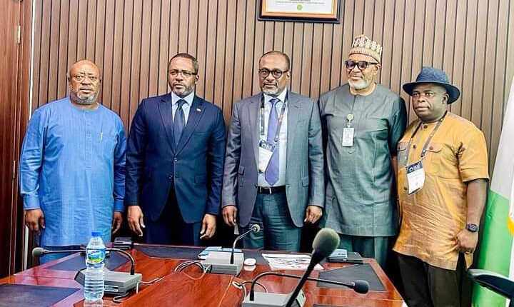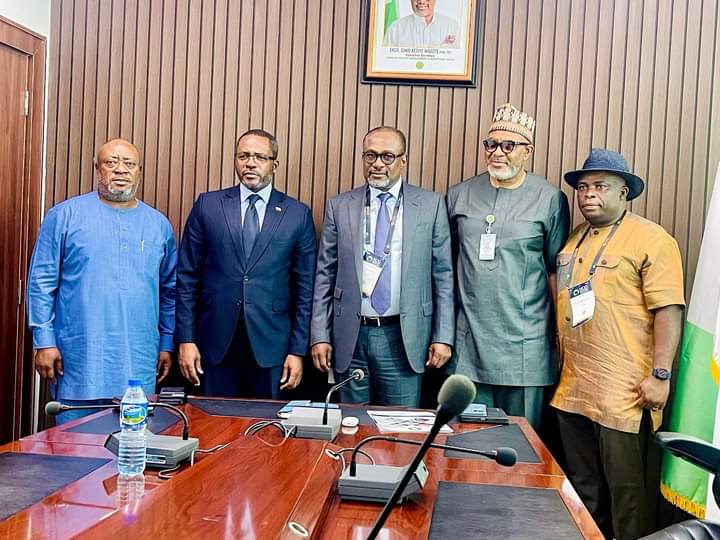 The Executive Secretary NCDMB, Engr. Simbi Kesiye Wabote FNSE, earlier today at the Board’s liaison office in Abuja, received in audience, a high powered delegation from Equatorial Guinea 🇬🇶, led by the Hon. Minister of Planning and Economic Diversification, Gabriel Mbega Obiang Lima.