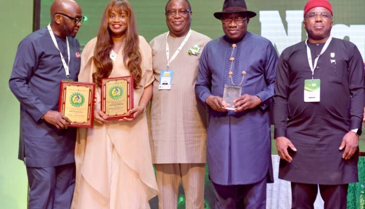 Champions of Nigerian Content Awards: Former President, Federal Republic of Nigeria & recipient of Nigerian Content lifetime achievement award, His Excellency, Dr. Goodluck Ebele Jonathan, Executive Secretary, NCDMB, Engr. Felix Omatsola Ogbe, recipient of Nigerian Content Icon of the Year award and Managing Director, Renaissance Africa Energy, Engr. Tony Attah, recipient of women in leadership award and Managing Director, Starzs Investments Company Limited, Iroghama Ogbeifun at the Nigerian the Champions of Nigerian Content held on Wednesday in Yenagoa Bayelsa State
