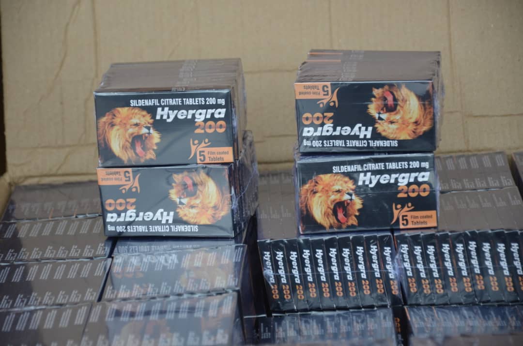 Noting that “these Containers were found to contain, 1,054,400 bottles of different cough syrup codeine (100ml); 9,100 pieces of Chilly Cutter; 2,175,000 tablets of Hyergra tablets (200mg); 1,300,000 tablets of Really Extra Diclofenac Pain Relief tablets (50mg).The above seizures is estimated at Eleven billion, Two million naira (₦11,200,000,000.) which represents a huge loss on the part of those involved despite the fact of a jail term that awaits any of them who will be arrested as a result of further investigation.”