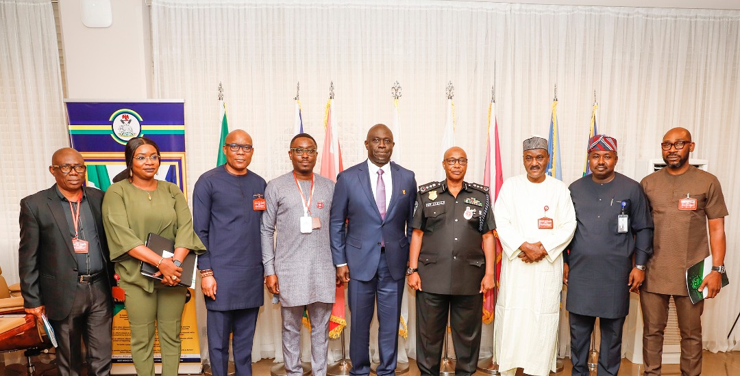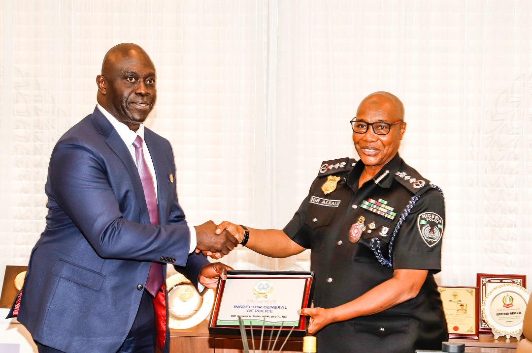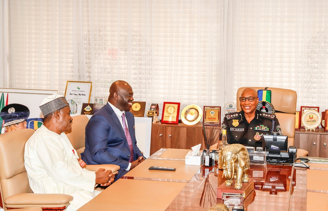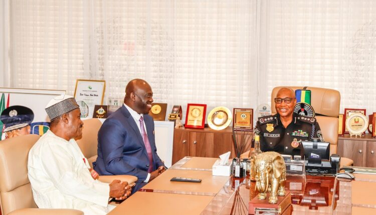 The Inspector General of Police Usman Alkali Baba, received Major General Barry Tariye Ndiomu (retd) Interim Administrator, Presidential Amnesty Programme (PAP), and his team, during a courtesy at the Police Headquarters, in Abuja on 6th December 2022.