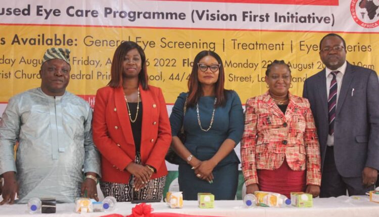 L-R: Chairman, Lagos Island East Local Council Development Area, Mr. Muibi Folawiyo; Lead, Sustainable Community Development, National Petroleum Investment Management Services, Mrs Tolulope Derin-Adefuwa; Business Opportunity Manager, Shell Nigeria Exploration and Production Company Limited (SNEPCo), Mrs Ibiyemi Asaolu; Director for Administrative Training, Lagos State Ministry of Health, Dr Olufunmilayo Shokunbi; and Shell’s Regional Community Health Manager, Dr Akin Fajola, at the opening session of NNPC/SNEPCo’s Vision First programme, a free medical eye care outreach for Lagos Island community… on Monday