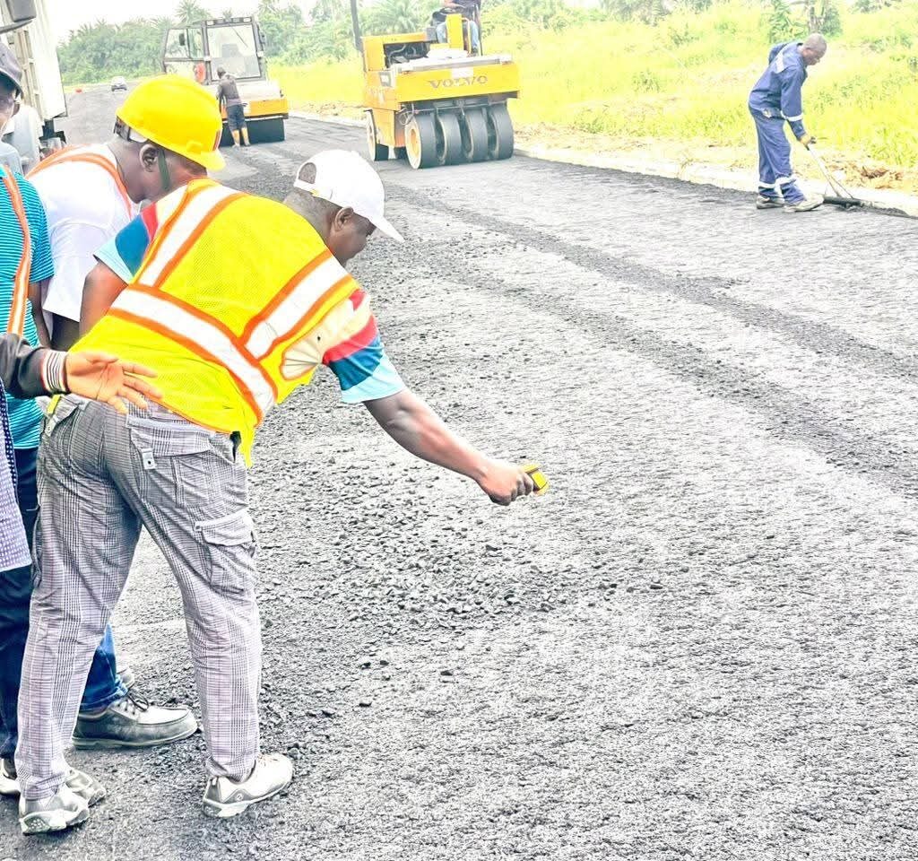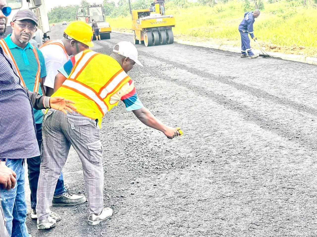 The Chairman thereafter proceeded to inspect the Agbura/Ox-Bow Lake Road, where he lauded the contractor for maintaining the required asphalt heat temperature and adhering to best engineering practices.