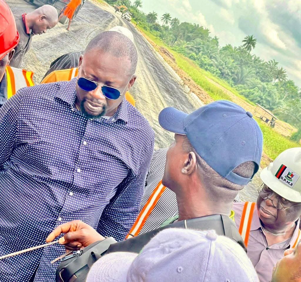 The Chairman, Directorate for Project Monitoring and Evaluation, Hon. Engr. Ebiye Tarabina, Mcoren, today inspected the ongoing Akaba/Okodi Road project as part of efforts to ensure that contractors execute their jobs in strict compliance with contractual specifications.
